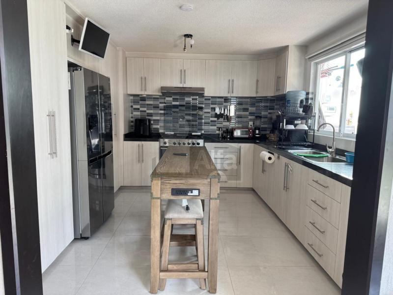 La cocina está equipada con alacenas funcionales que se integra a un espacio abierto de sala y comedor con chimenea de bioetanol y cava empotrada, ideal para el entretenimiento y disfrute con tu familares y amigos. También cuanta con estudio, sala de TV, jardín y una terraza tipo lounge con piso de PVC (DECK) tipo madera, pérgola iluminada, campana con extractor y sistema de sonido ambiental, pensada para disfrutar en cualquier momento del día.