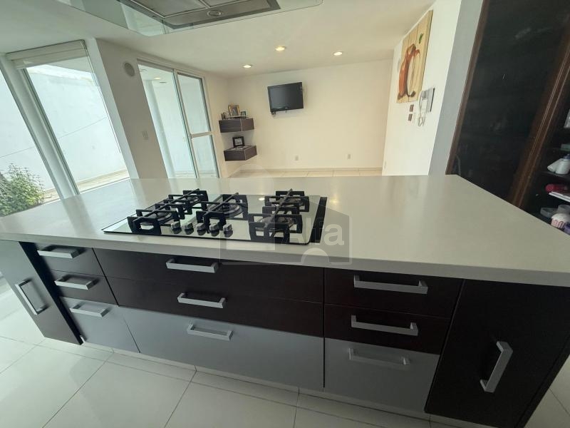 En planta baja, destaca el diseño funcional y elegante con recibidor, sala con chimenea de gas, comedor a doble altura, despacho, armario de visitas, cocina equipada con alacena y segunda chimenea, área de bar, cuarto de servicio con baño completo, área de lavado, bodega, patio trasero y dos pasillos de servicio.