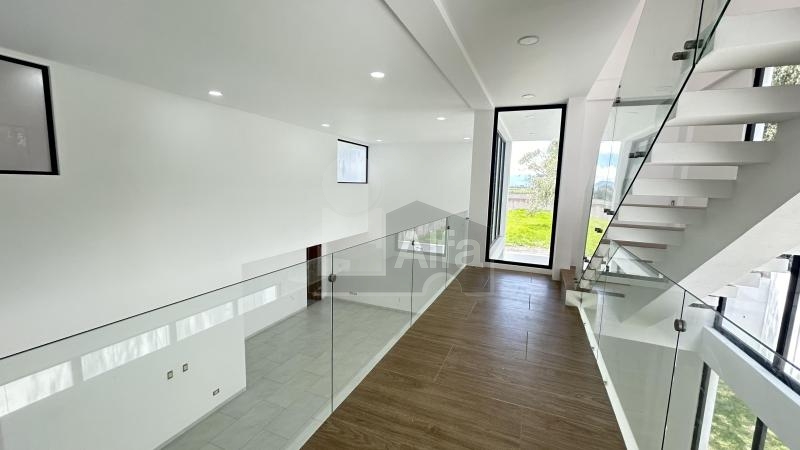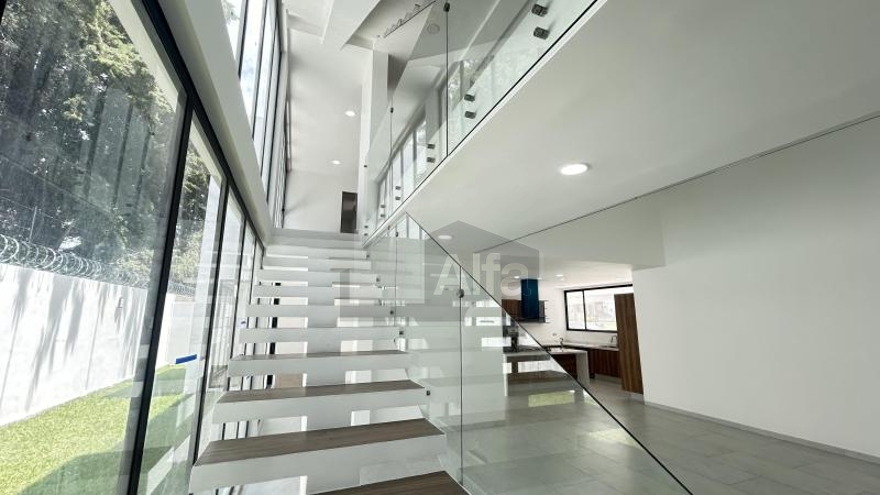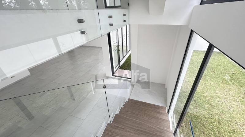En la planta alta, encontrarás una amplia sala de T.V. para entretenimiento familiar además de tres recámaras, cada una equipada con vestidor y baño completo, brindando privacidad y confort. La casa también incluye un roof garden el tercer piso, ideal para relajarse y disfrutar de las vistas.