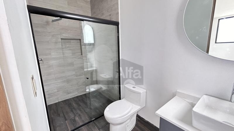 En la planta baja, te recibe un hall de entrada que da paso a una recámara con closet y baño completo, ideal para visitas o familiares. La planta baja también cuenta con un medio baño de visitas, una amplia sala y comedor, de doble altura, así como una cocina abierta equipada con área de desayunador. Además, hay un acogedor family room para que puedas disfrutar tiempo con tu familia. Contiguo a la cocina esta un cuarto de lavado techado y un cuarto de servicio con baño completo donde podrás colocar una gran alacena si así lo consideras necesario. Disfruta del jardín trasero, perfecto para pasar momentos al aire libre.